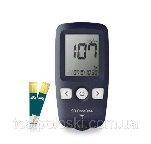 Глюкометр SD Codefree — — це компактний, ручний і легко читаний монітор, який дає точне уявлення про рівень глюкози в крові на момент проведення аналізу з маленької краплі крові. Пристрій використовує технологію біосенсора глюкозооксидази та має діапазон вимірювань 10 — 600 мг/довг (0,6 — 33,3 ммоль/л). Він видає результати всього за 5 секунд, використовуючи невеликий об'єм зразка — 0,9 мкл. Глюкометр SD Codefree може зберігати до 500 результатів тестування. Він став популярним серед людей із діабетом, яким доводиться купувати окремі тест-смужки, завдяки доступності та надійності приладу. До глюкометра додатково додається 50 тест-смужок.