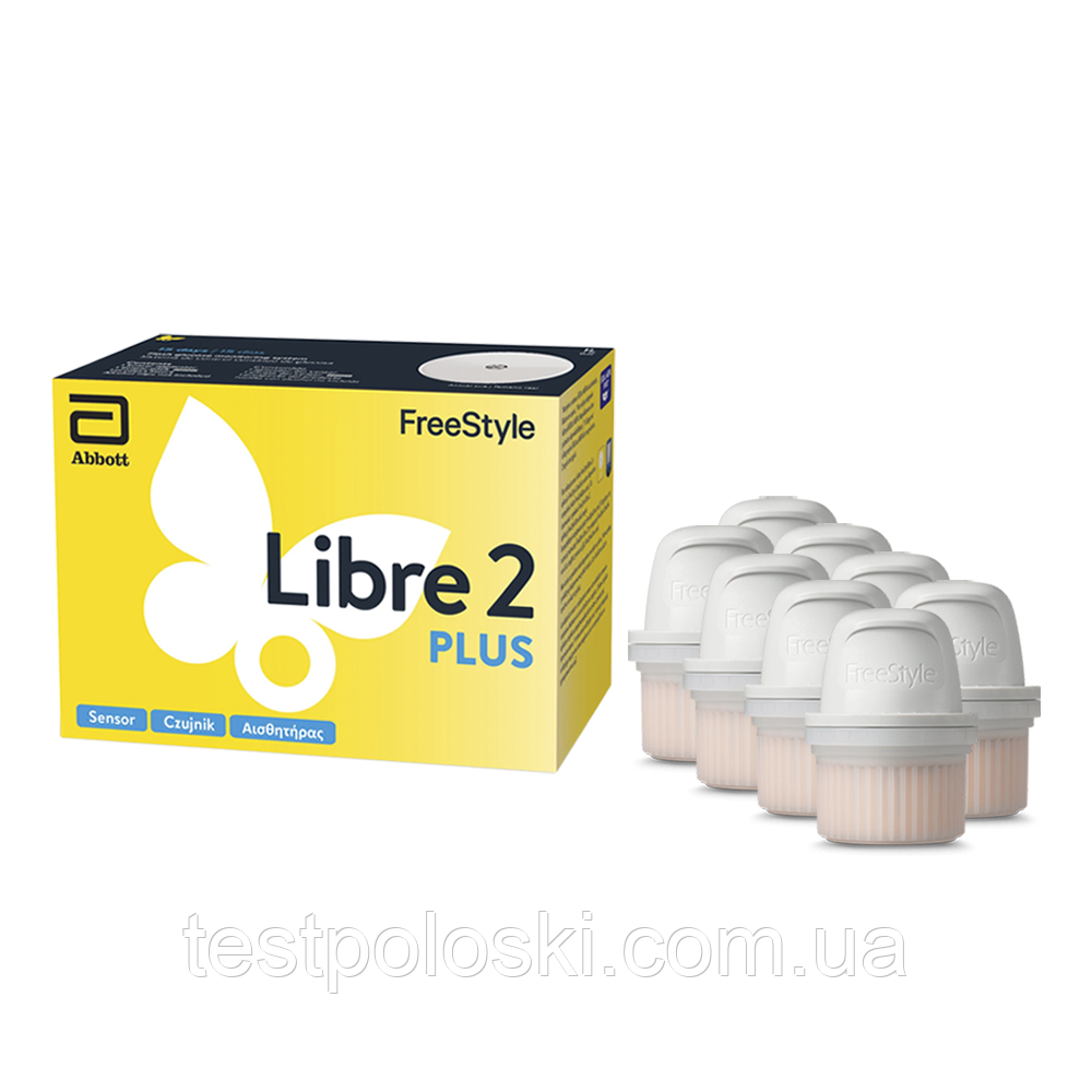 FreeStyle Libre 2 Plus — це сучасна система для контролю рівня глюкози від компанії Abbott Laboratories (Франція), яка містить датчик, що кріпиться на шкірі, і зчитувач або мобільний застосунок, що дає змогу миттєво дізнатися рівень цукру в крові. Система слугує доповненням до самостійного контролю глюкози в крові, вона призначається для вимірювання глюкози в інтерстиціальній рідині. У цьому наборі 8 пачок.